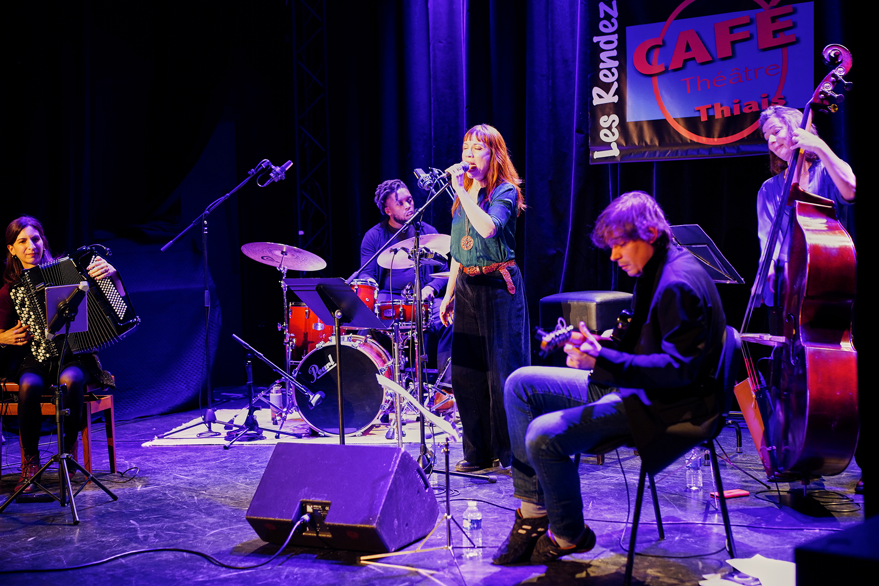 "Jazzroom 2047", quintet jazz original (accordéon, voix, guitare, contrebasse, batterie) mené par Delphine Galvès séduit par ses arrangements inspirés et l’efficacitéde son groove.
